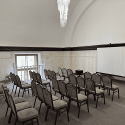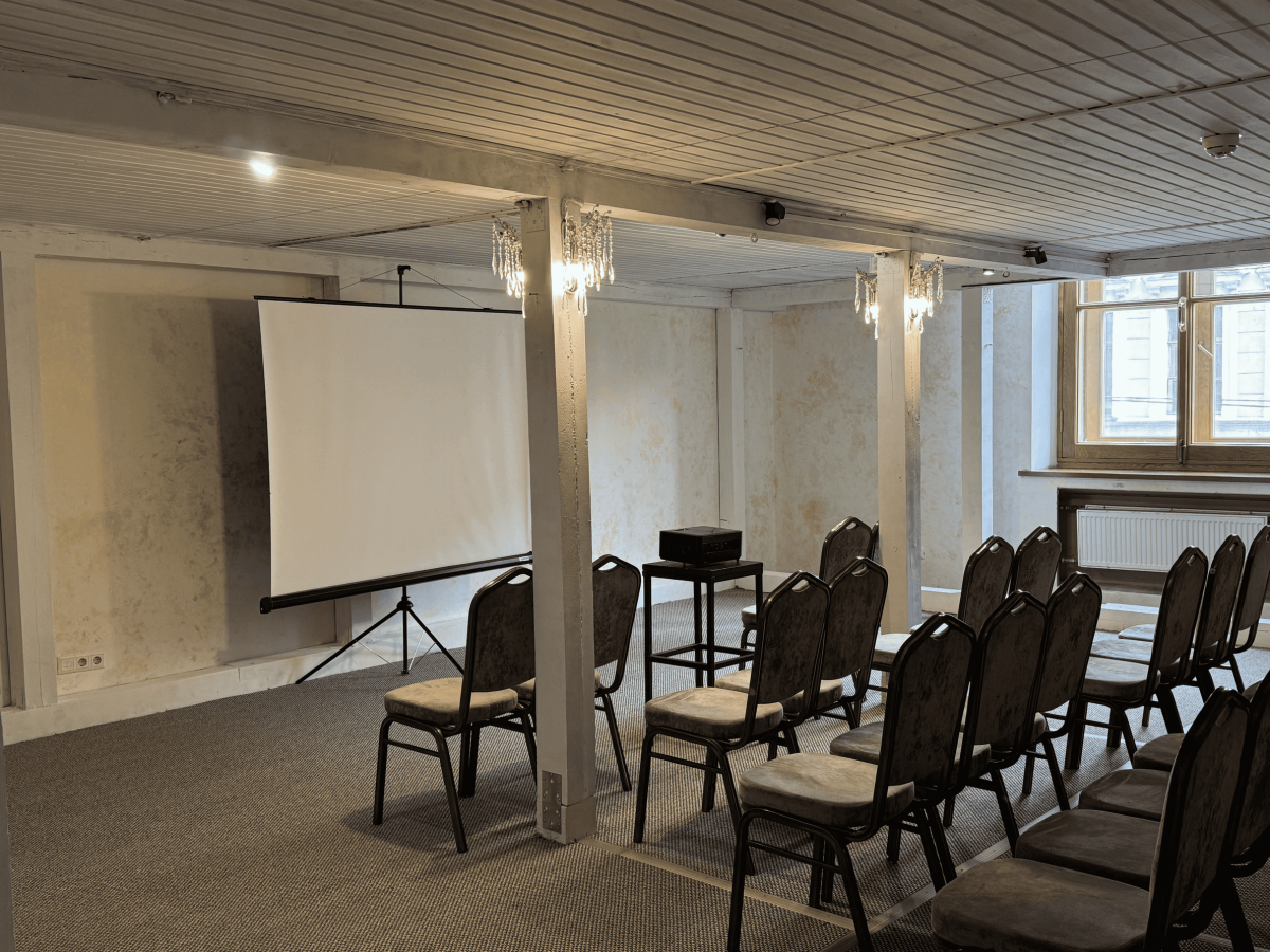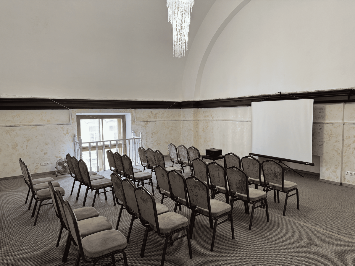 Зал представляет собой двухэтажную зону для проведения встреч и мероприятий небольшим количеством гостей. На первом этаже театральная рассадка предполагает до 40 мест, а на втором – до 50. Зал выполнен в светлых тонах и идеально подходит для бизнес-встреч, турниров по настольным или интеллектуальным играм, лекций, митапа или паблик-тока.