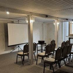 Высокотехнологичное оборудование обеспечивают отличное звучание для ваших выступлений или музыкального сопровождения (ТВ-панели, проектор, экран, а также микрофоны, колонки и звуковая система с сабвуфером)