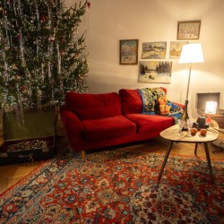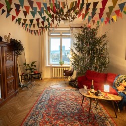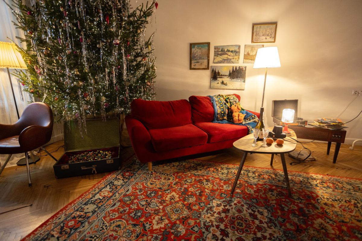 «В этом зале мы решили перенести тебя на 25−30 лет назад, туда, где огромная живая трехметровая ель, урашенная сотнями стеклянных ретро игрушек является главной красавицей квартиры. Запах мандаринов и ели бьет в нос, проигрыватель с пластинками ждет, когда ты поставишь любимые мелодии. А ты только что забежал домой с мороза, бросил санки посреди комнаты и ждешь, когда же он наступит. Тот самый, счастливый и теплый Новый Год!»