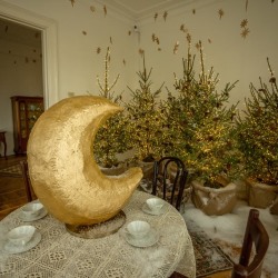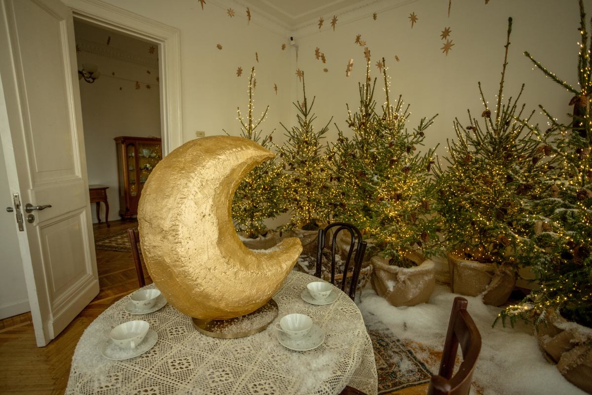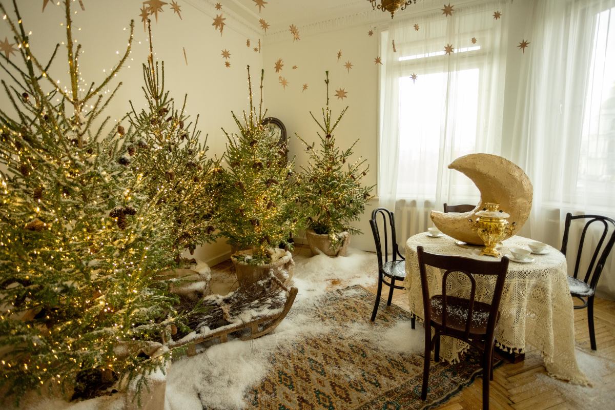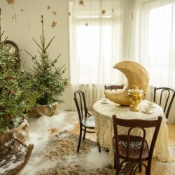 9 живых елей будут окружать тебя в двух комнатах. Месяц, украденный чертом, станет ключевой фигурой большого зала. Золотые звезды покроют морозное небо…»