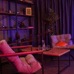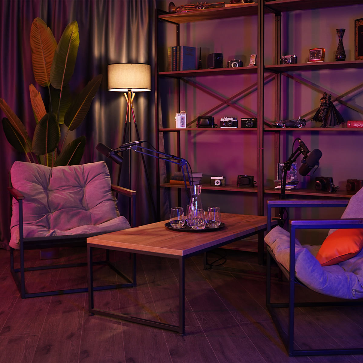 Комплект профессионального звука с микрофонами или петличками, подкастерский микшерный пульт, комплекты постоянного света, 3 уровневая шумоизоляция, полнокадровые камеры Sony и 1 Гбит/с интернет для высокоскоростного соединения при проведении вебинаров и трансляций. А так же, у нас есть много разных вариантов мебели, декораций и освещения, что даёт возможность поменять интерьер не выходя из одной студии.