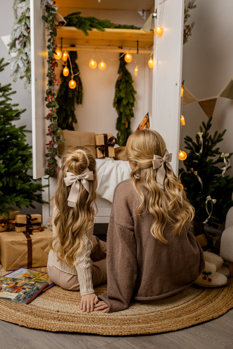 В зале есть 2 большие заснеженные ёлки и 2 небольшие уютные украшенные росой.