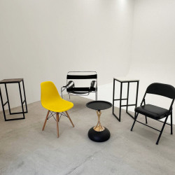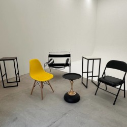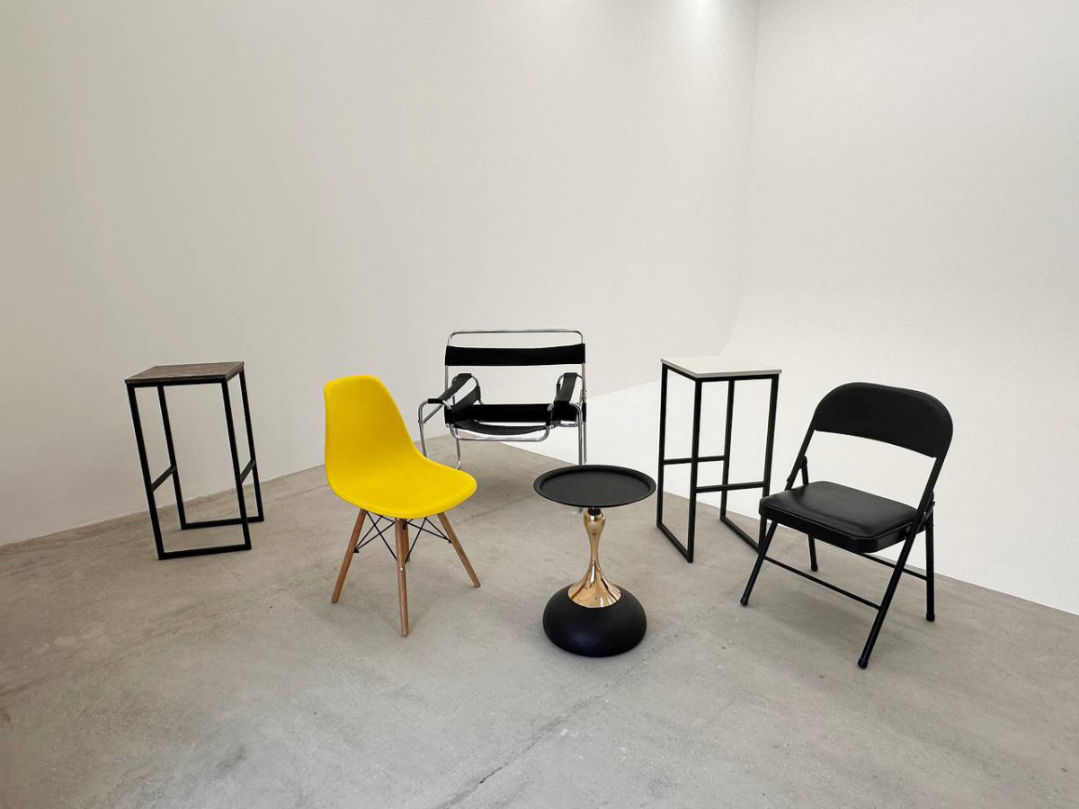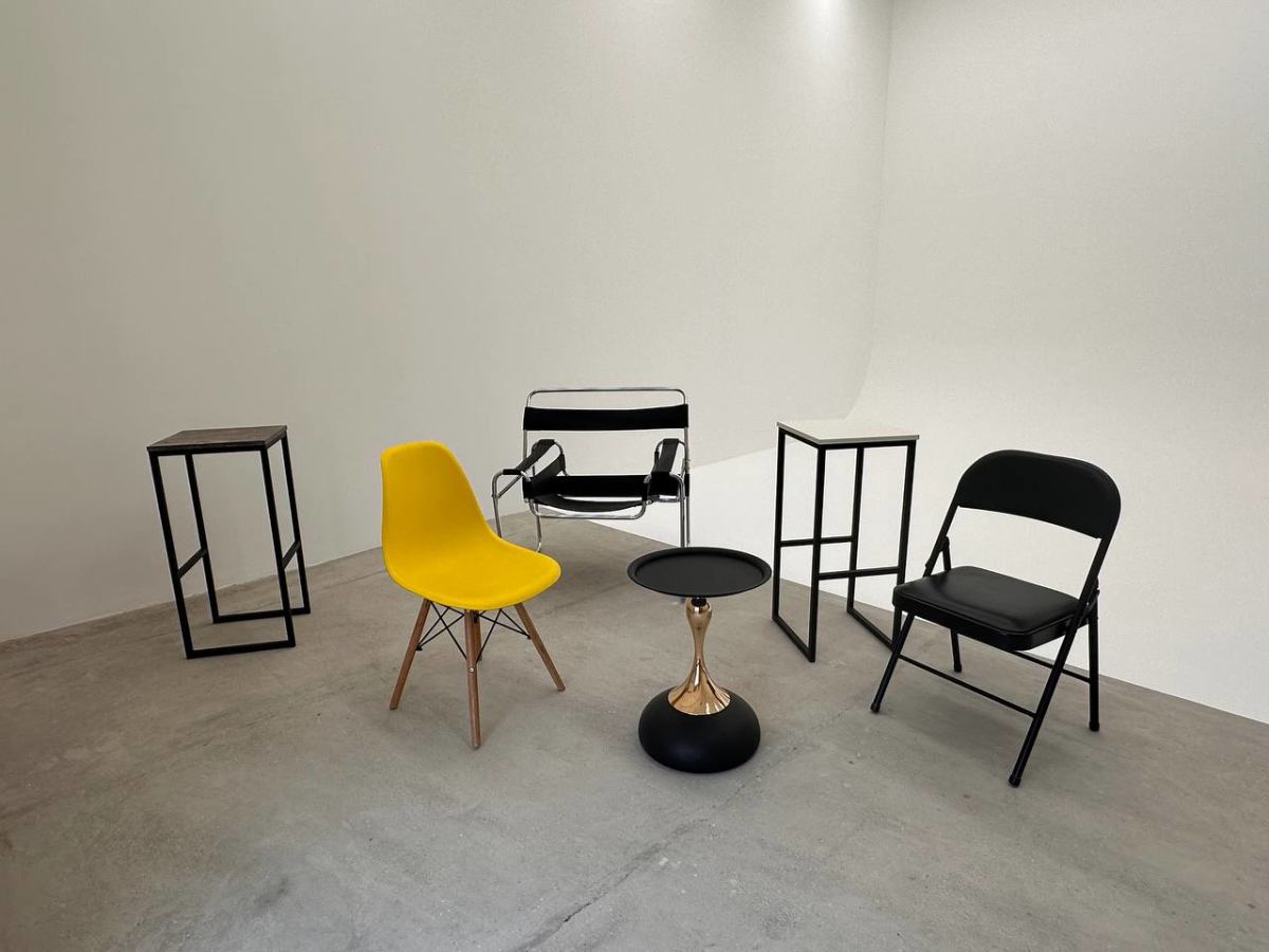 В студии есть диван, стулья, кресло, зеркало, гримерный стол.
