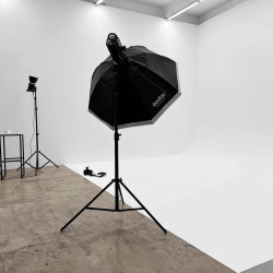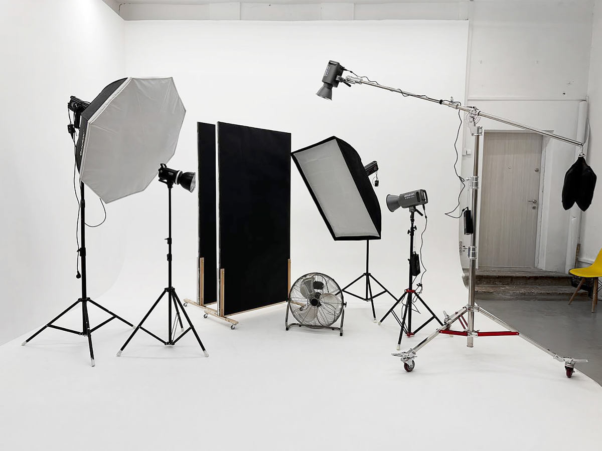 2. Белая циклорама 5 метров в ширину, вылет 4 метра, потолок 4 метра.