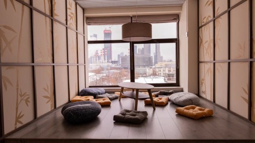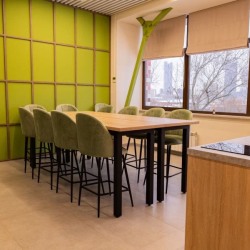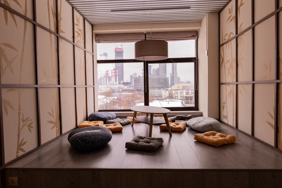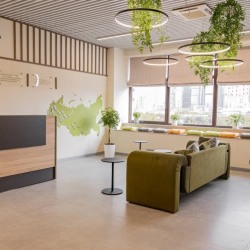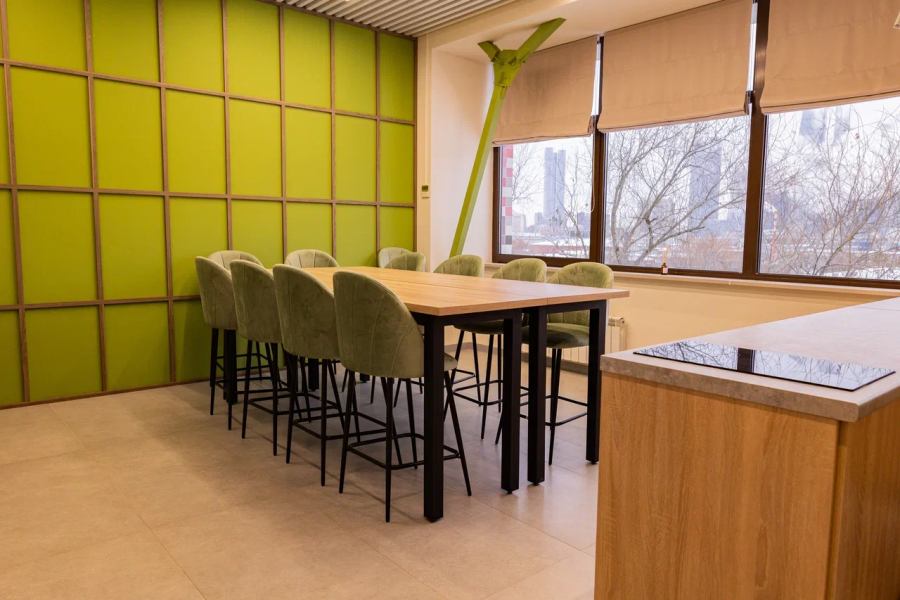 Наше пространство находится в современном бизнес-центре в английском стиле. Внутри пространства выполнен светлый дизайнерский ремонт с зеленым акцентом. Есть все необходимое для комфортного времяпрепровождения: гардероб, кондиционеры, большие окна, прекрасный вид на Москва-Сити, туалет, лаунж, удобная мягкая мебель. На площадке всегда находится администратор, чтобы оперативно помочь вам во время вашего мероприятия. Для гостей предоставляем парковочные места внутри БЦ бесплатно.