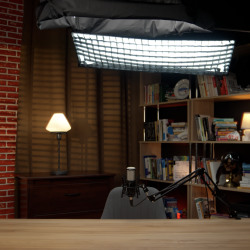 Добро пожаловать в наш современный зал для подкастов — идеальное пространство для записи качественного видеоконтента