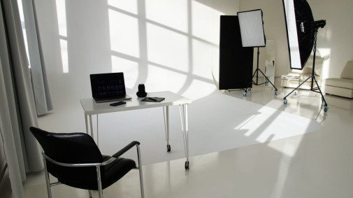 Для работы со светом предусмотрены длинные шторы в пол, включая плотный blackout, чтобы вы могли полностью контролировать освещение и создавать нужное настроение в кадре.