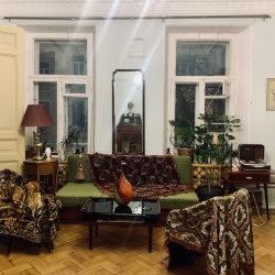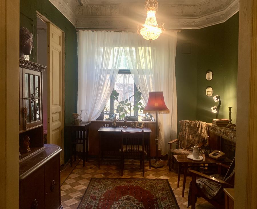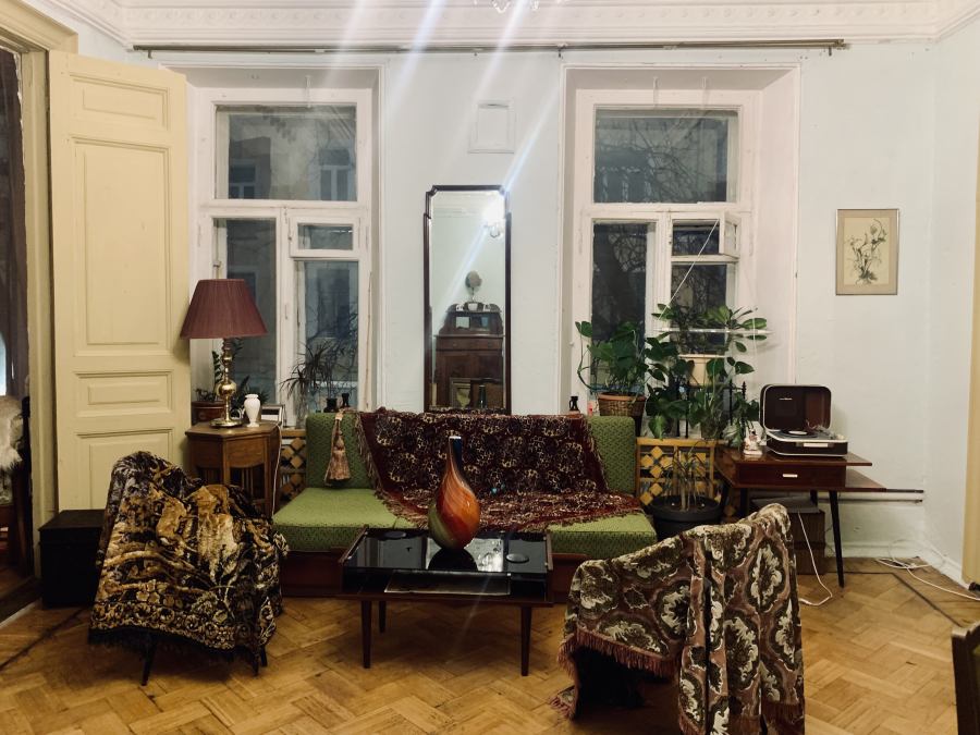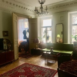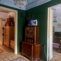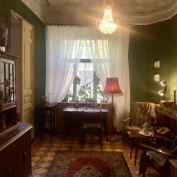 В квартире сохранены все аутентичные дореволюционные элементы - деревянные окна, филенчатые фактурные двери, лепнина, уникальный шахматный паркет.