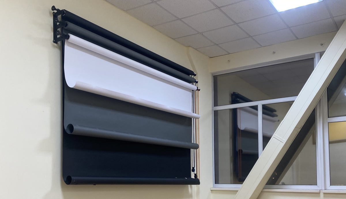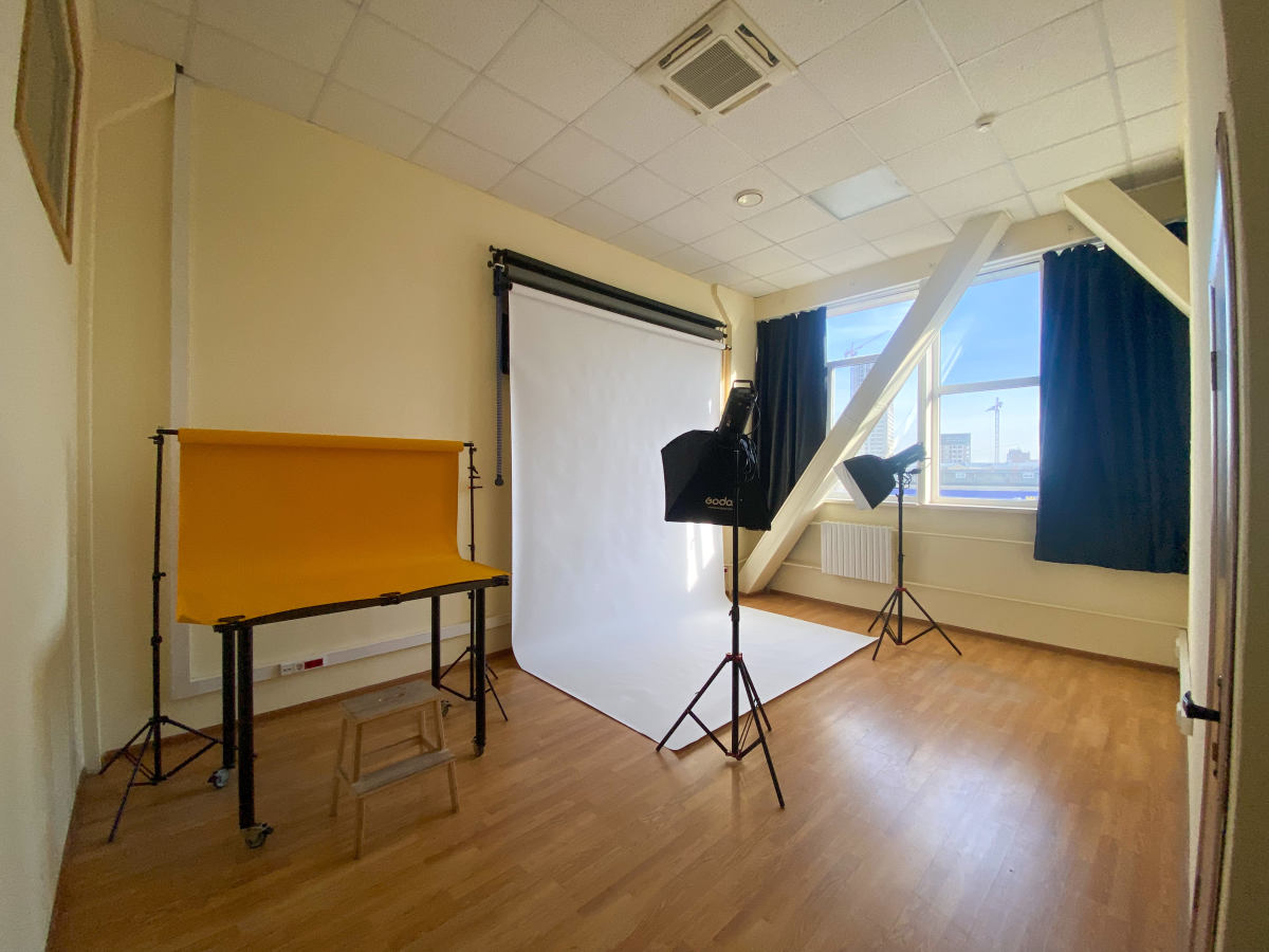 В студии на окнах есть блэкаут шторы, позволяющие закрыть дневной свет