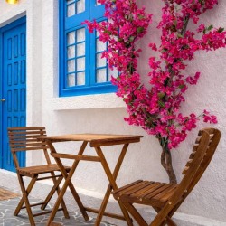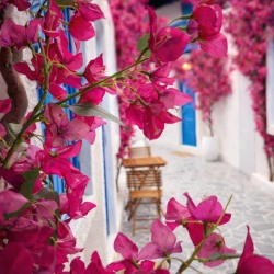 В окружении цветущих бугенвиллий улицы Санторини особенно прекрасны, а эффектный контраст с белоснежной архитектурой местных домов заставляют вас полностью погрузиться в атмосферу этого сказочного острова.