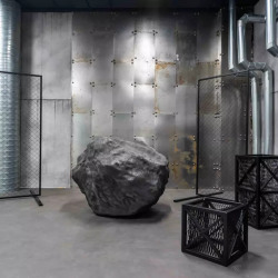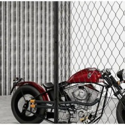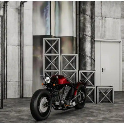 Главными элементами являются кованная решётка, выступающая как фактурный фон, металлический декор и культовый мотоцикл Harley-Davidson, который служит не просто реквизитом, а центральным арт-объектом.