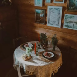 Уютная ретро студия в жилом бревенчатом доме со всеми коммуникациями. В доме много винтажных предметов интерьера, декора, текстиль, посуда.
