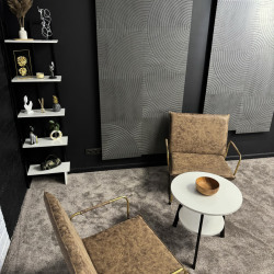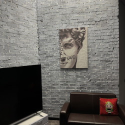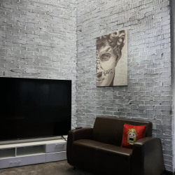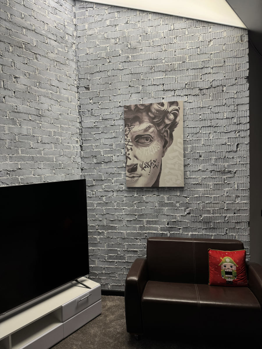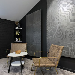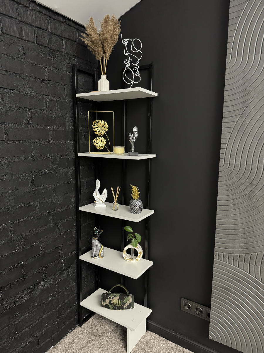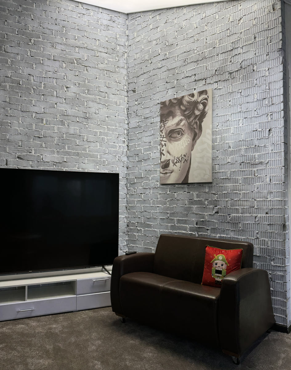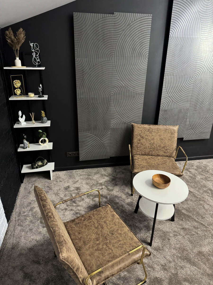 Тёмная фактурная стена, декоративные панели и продуманные детали интерьера создают премиальный, современный визуал, который отлично смотрится в кадре без перегруженных декораций.
