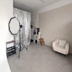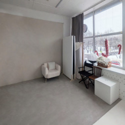Уютная фотостудия с угловой циклорамой и фонами.