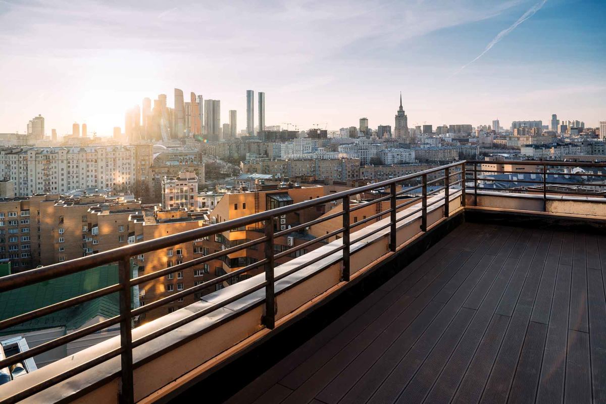 Пространство находится на 15 этаже с удобным проходом на просторную и безопасную террасу площадью 80 м² с видом на закатную сторону. С площадки открывается впечатляющий обзор