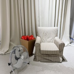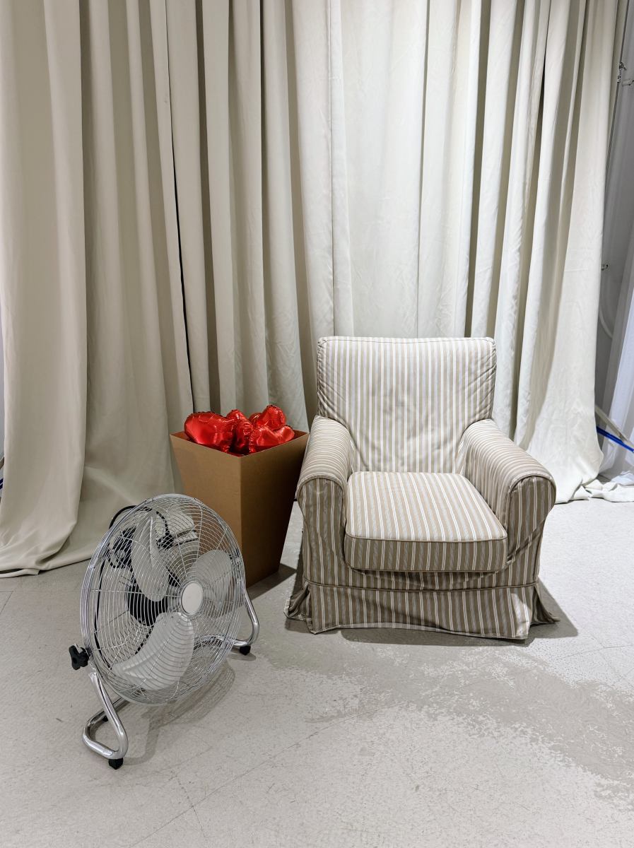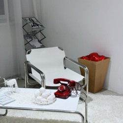 Тканевая фоновая система (бежевый цвет), белая стена, зеркала, кровать, стулья на выбор
