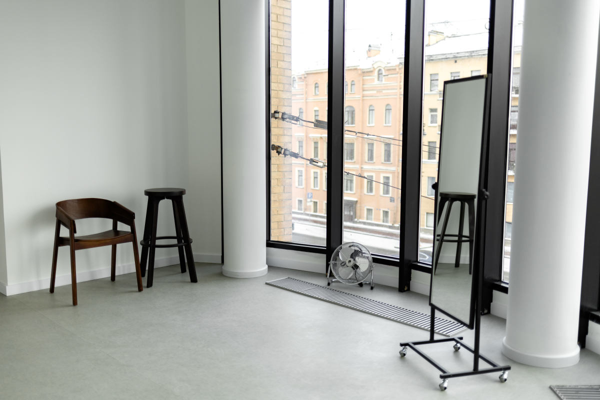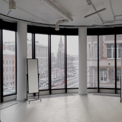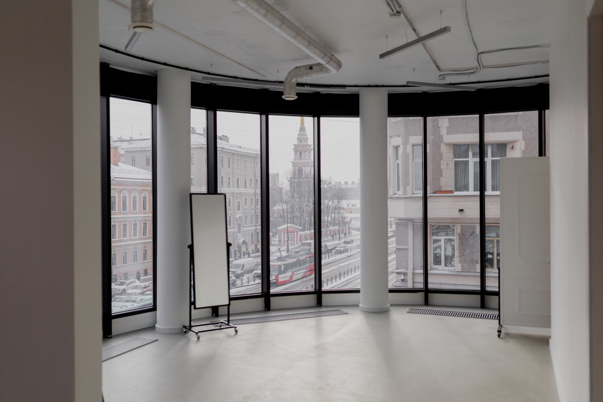 Просторный светлый зал с панорамными окнами, несколькими зонами для съемки и дизайнерской мебелью. Зал заполнен дневным светом даже в самую пасмурную погоду, а также оснащен необходимым оборудованием и двумя источниками искусственного освещения (импульсный и постоянный)
