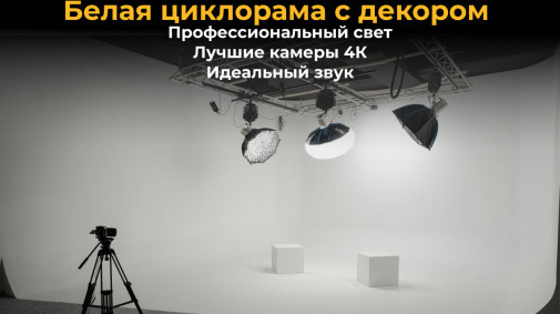 У нас есть 3 зала с разными стилями и профессиональная белая циклорама. Мы ценим ваше время, поэтому берем на себя всю сложную техническую часть: заранее выставляем свет, подготавливаем локацию точно по вашему техническому заданию (ТЗ) и сопровождаем запись на всех этапах. Вы просто приходите и снимаетесь.