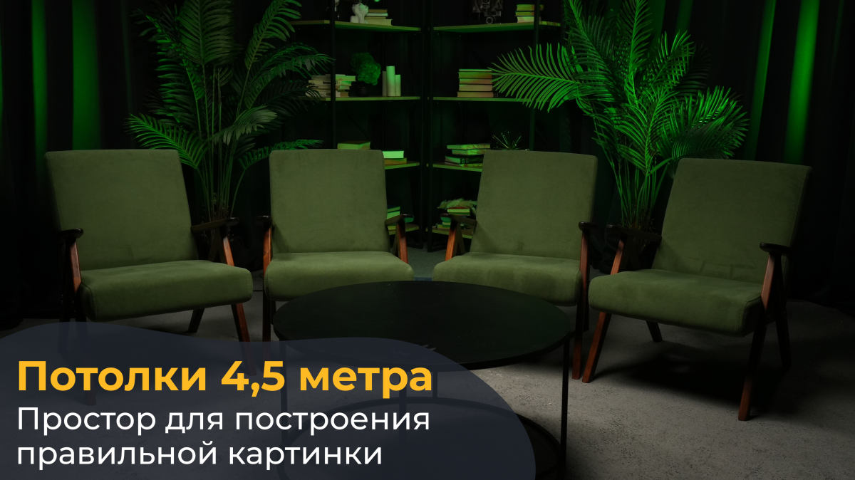 Площадка для профессиональных съемок: Здесь вы можете снять ролик, записать интервью или видеосъемку для бизнеса любого формата.