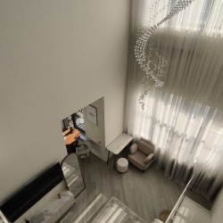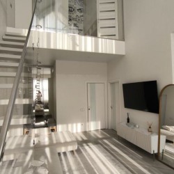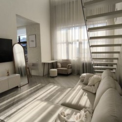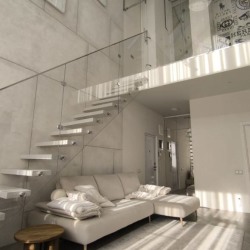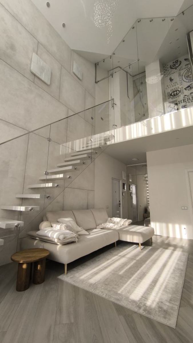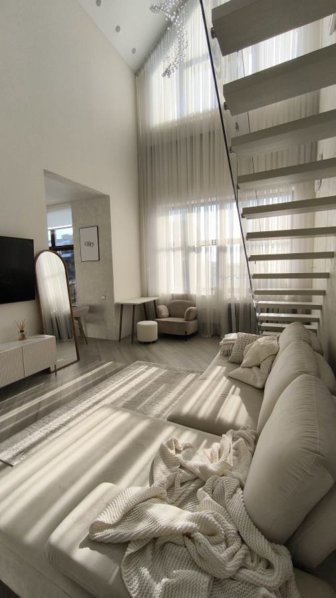 Доступные комнаты: гостиная, кухня, душевая, лестница на второй этаж, площадка на втором этаже, открытый балкон со стороны кухни.