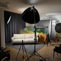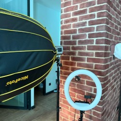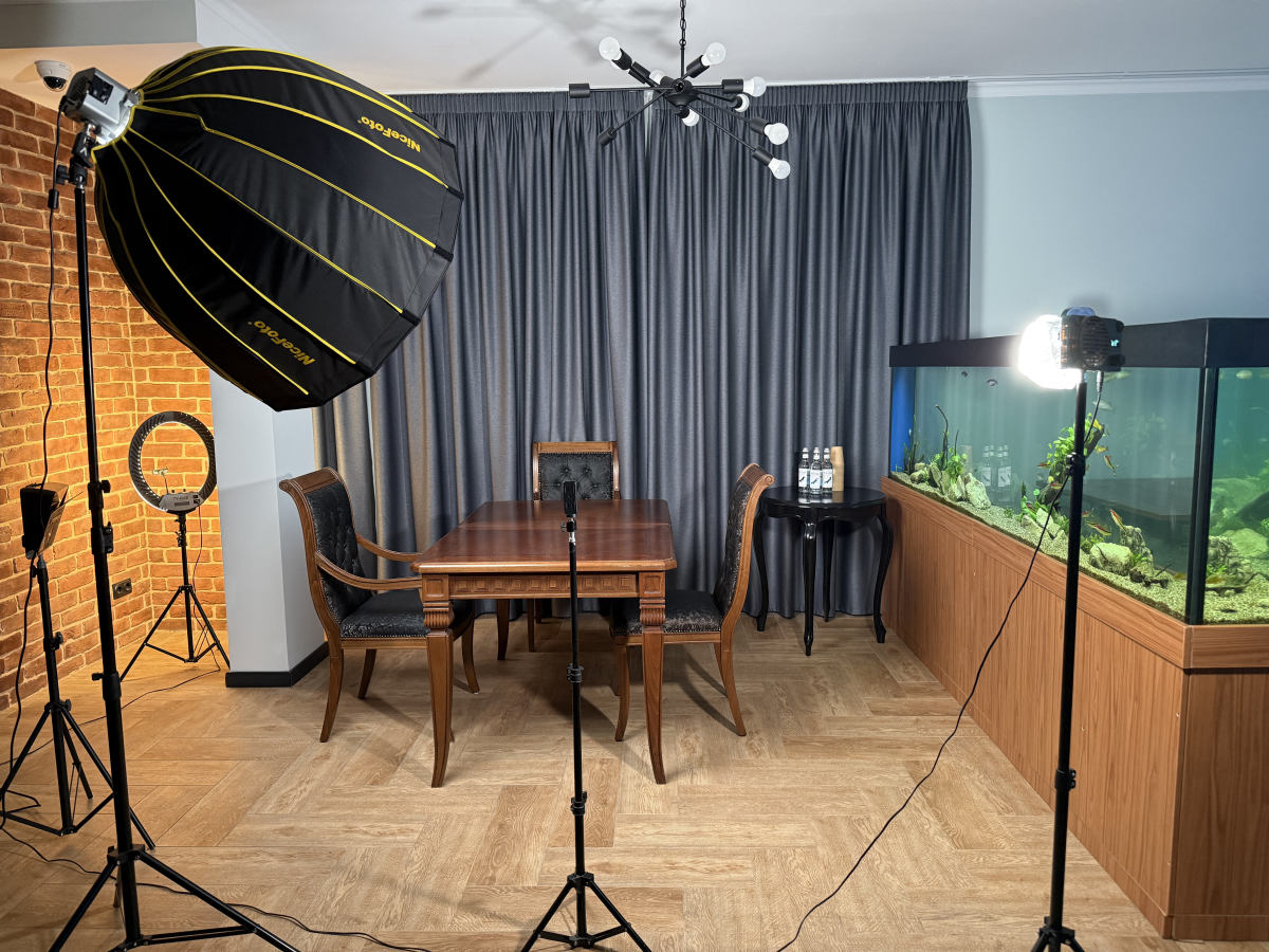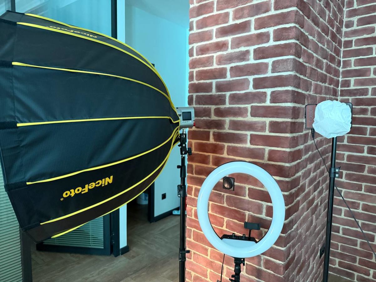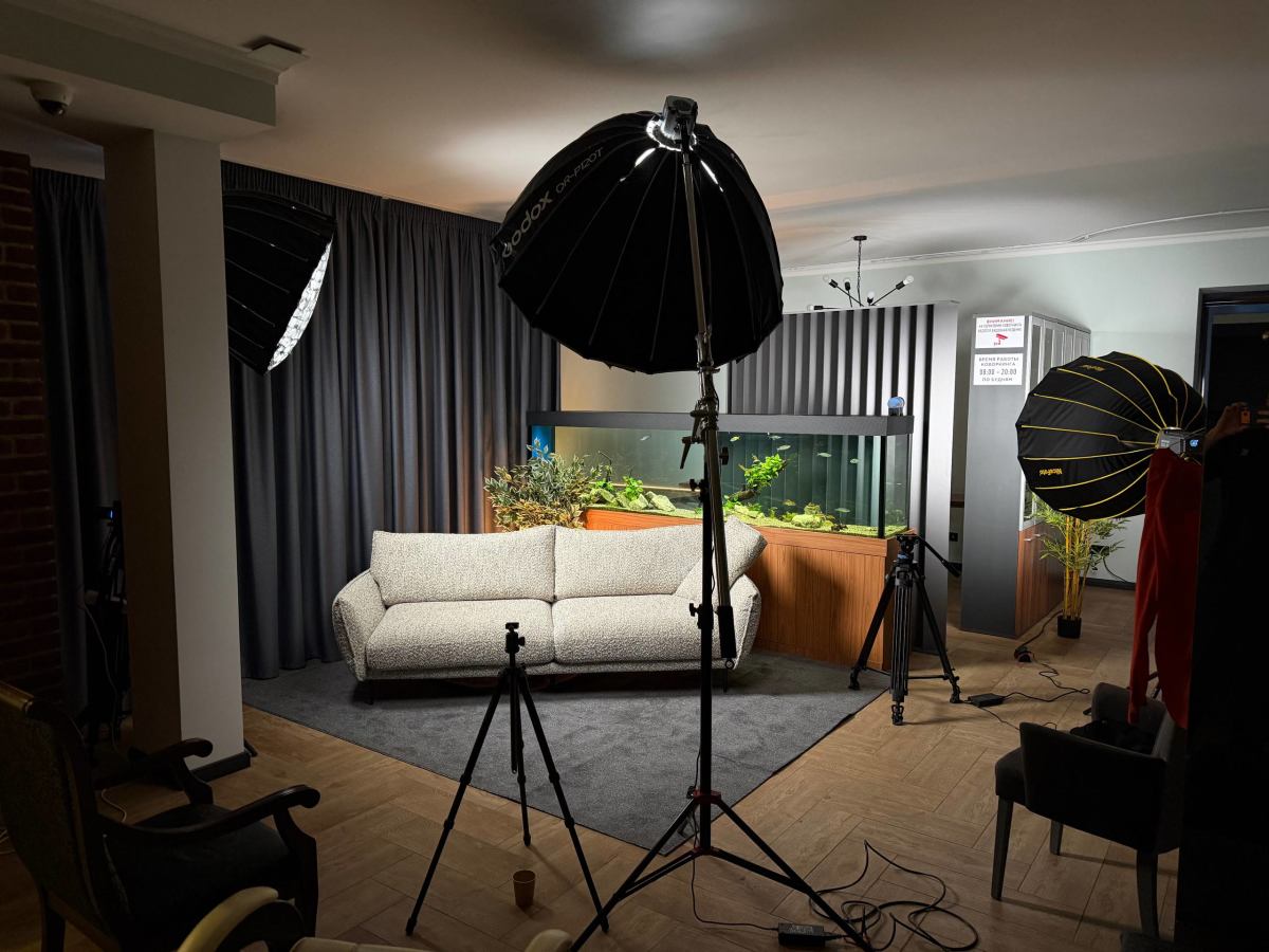 Зал для фото- и видеосъёмок, подходящий для записи контента, интервью и подкастов.