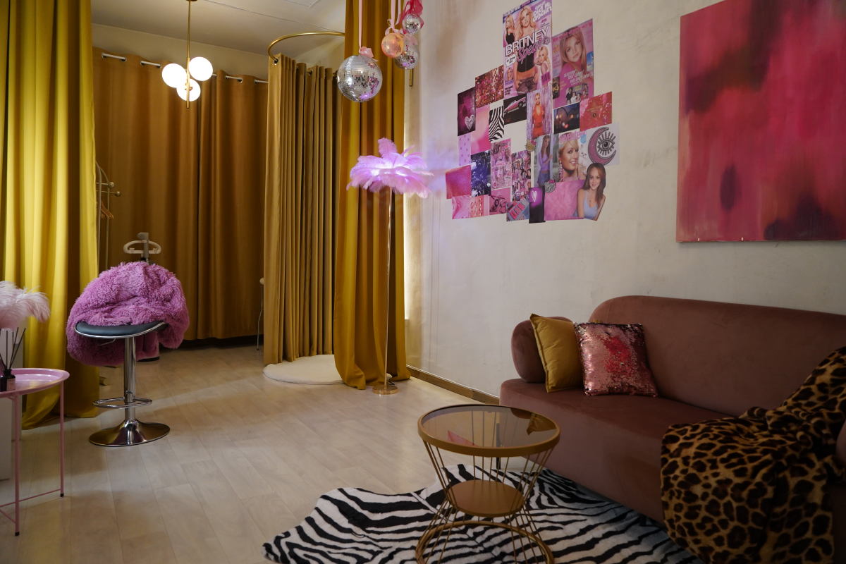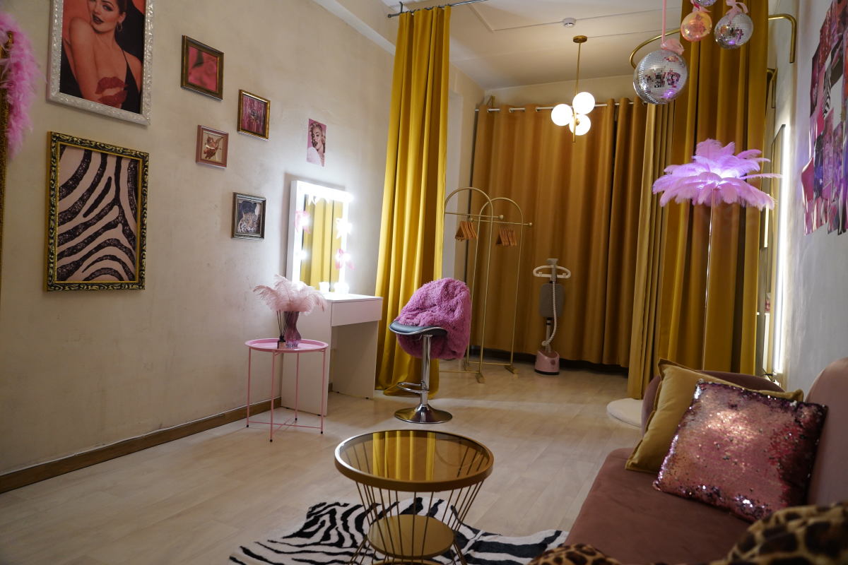 Комната расположена за пределами съемочного зала и входной зоны, что позволяет не пересекаться с технической группой и не мешать процессу съемки. Подходит для примерок, подготовке участников к кадру и съемок бэкстейдж-контента.