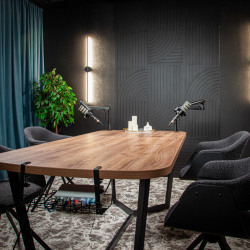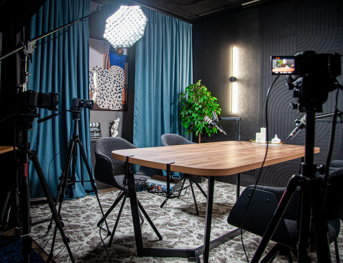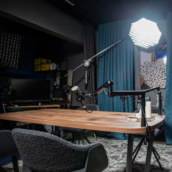 Студия идеально подходит для подкастов, интервью, видеосъёмок, образовательного и экспертного контента. Пространство оборудовано так, чтобы обеспечить удобство работы и качественный результат в кадре.