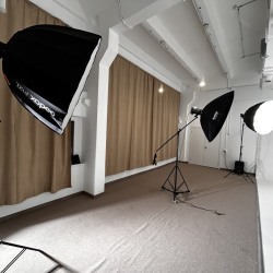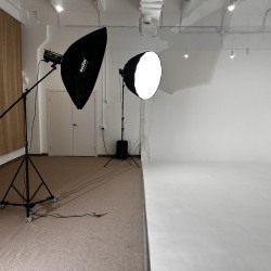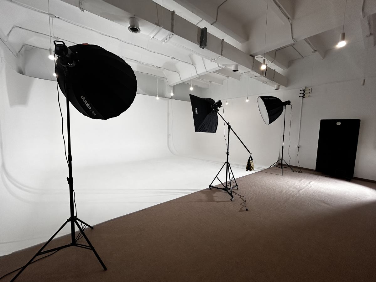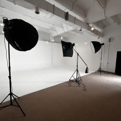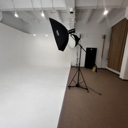 Большая циклорама 5м х 9м х 3,3м, в зале площадью 80 кв.м, с дневным светом, и современное съемочное осветительное оборудование для ваших творческих задумок.