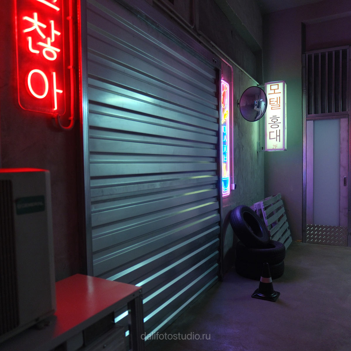 Корейская улицаГаражные ворота, неоновые вывески, поддон, блоки кондиционеров и покрышки — атмосфера оживлённого городского уголка Южной Кореи. Корейская subway-станцияНастенная разметка, лавка на колёсах, таксофон и подвесной светильник...