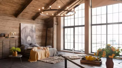 Минималистичный интерьер с фактурами бетона, камня и металла....