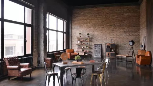 Бетон, металл и стильная минималистичная мебель. В студии теперь есть мобильная стена со встроенными светильниками.
