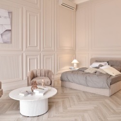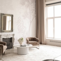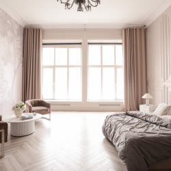 Светлый зал в бежевых тонах, 2 больших окна на солнечной стороне.