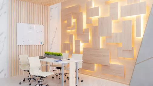 Бетон, металл и стильная минималистичная мебель. В студии теперь есть мобильная стена со встроенными светильниками.
