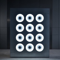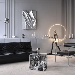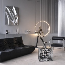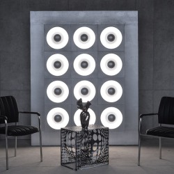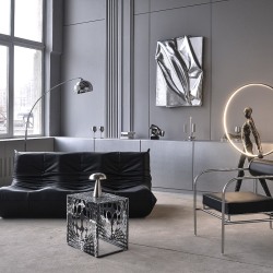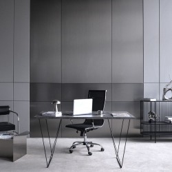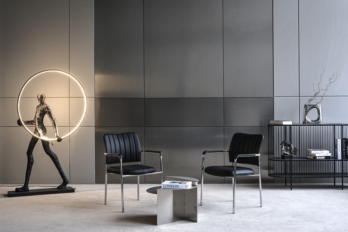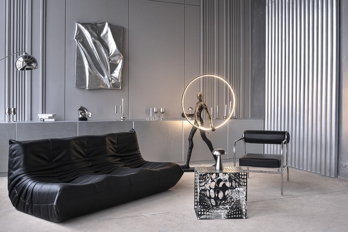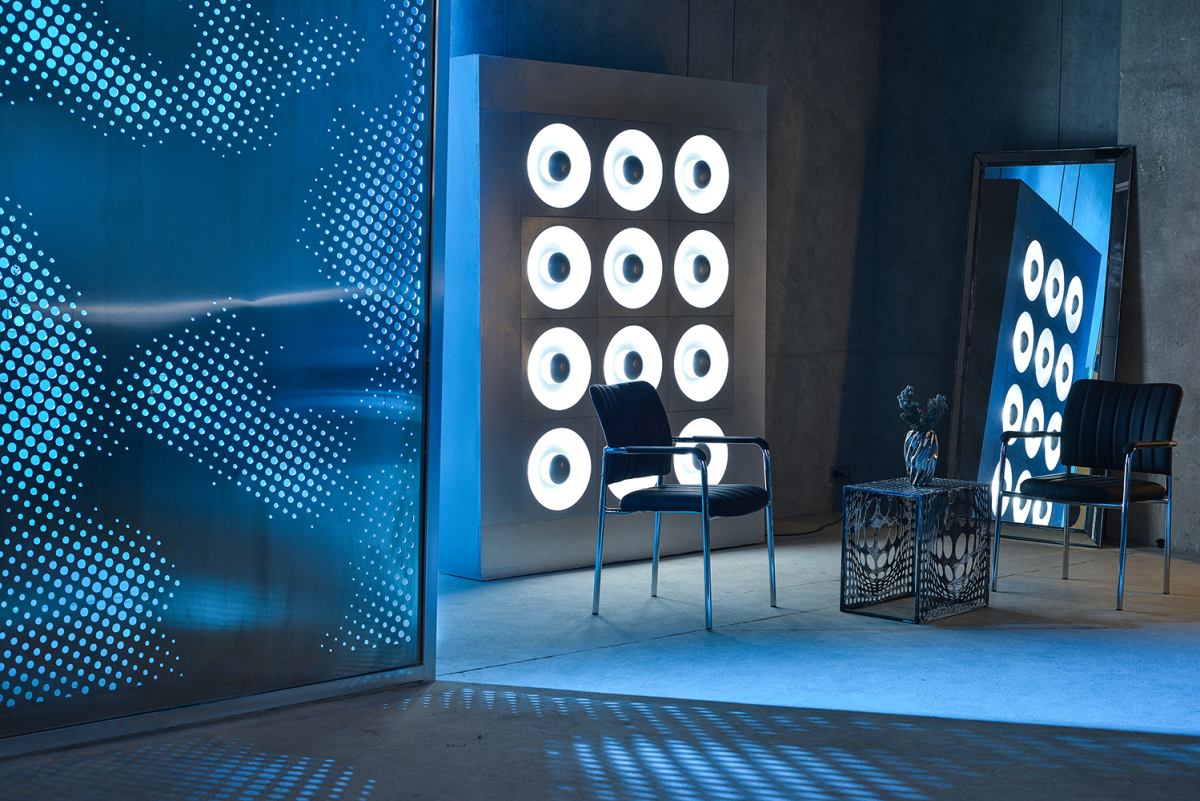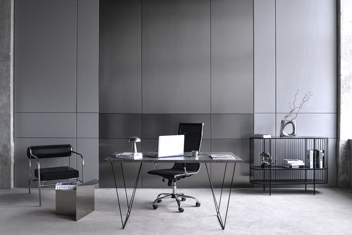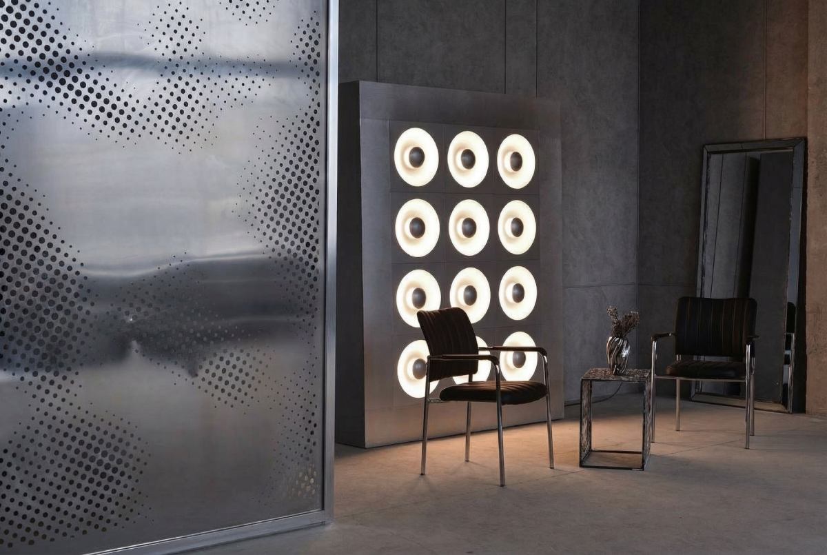 Бетон, металл и стильная минималистичная мебель. В студии теперь есть мобильная стена со встроенными светильниками.