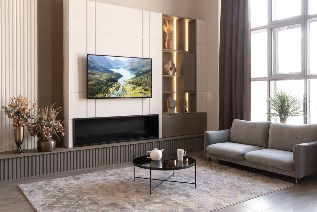Домашний интерьер с функциональной кухней,кабинетом и гостиной
