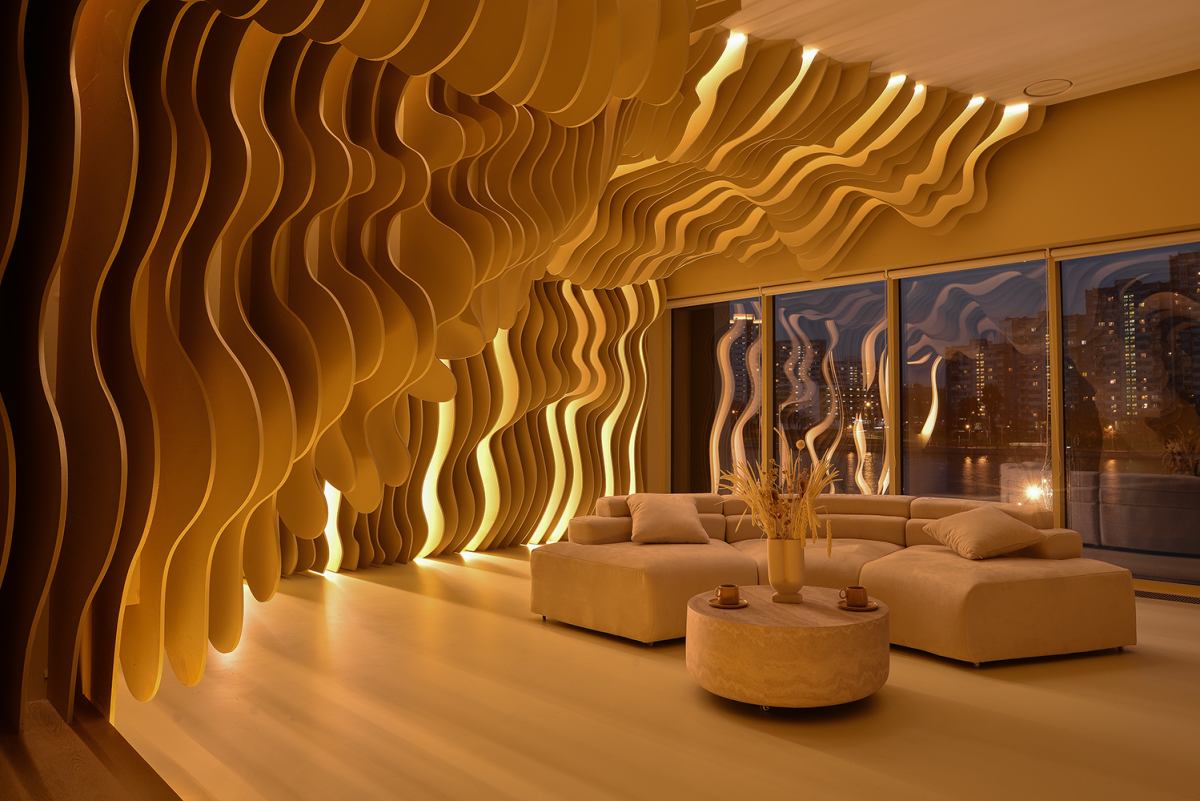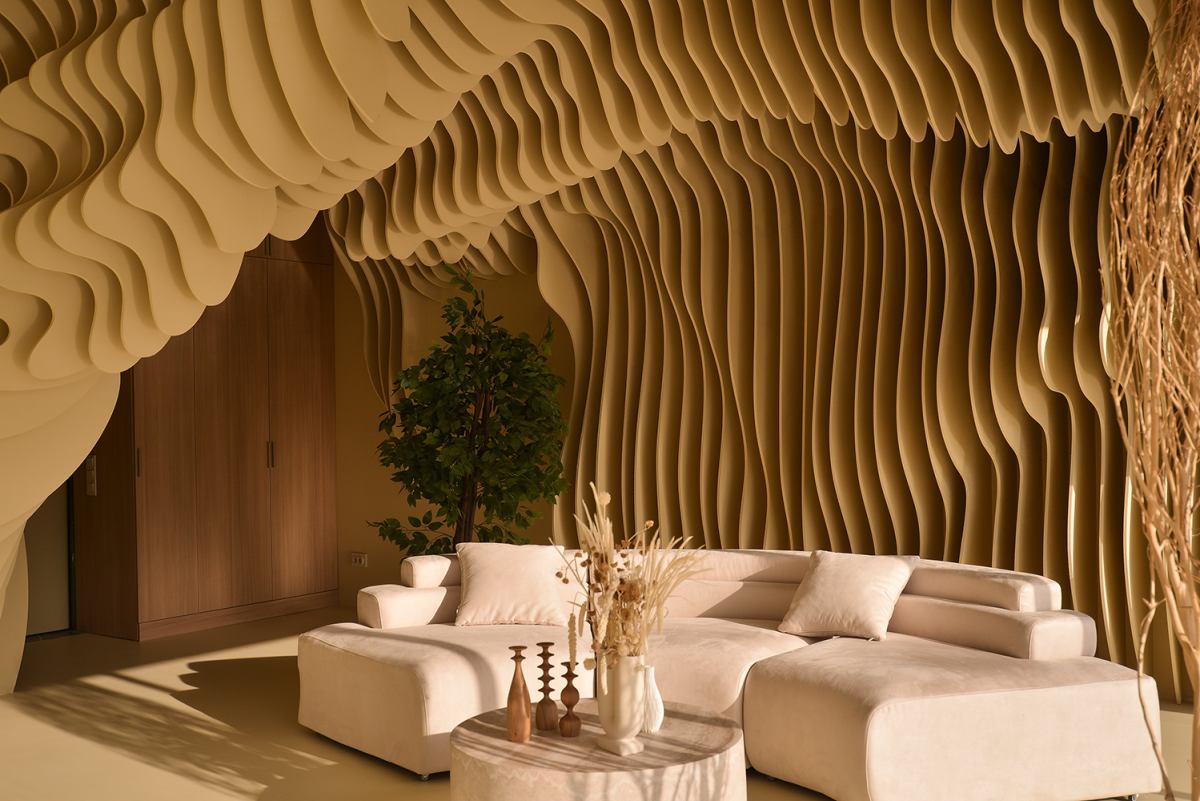 Минималистичный интерьер с фактурами бетона, камня и металла....