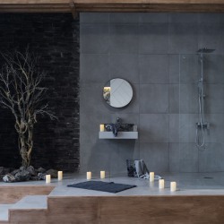 Бетон, металл и стильная минималистичная мебель. В студии теперь есть мобильная стена со встроенными светильниками.