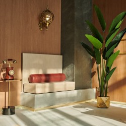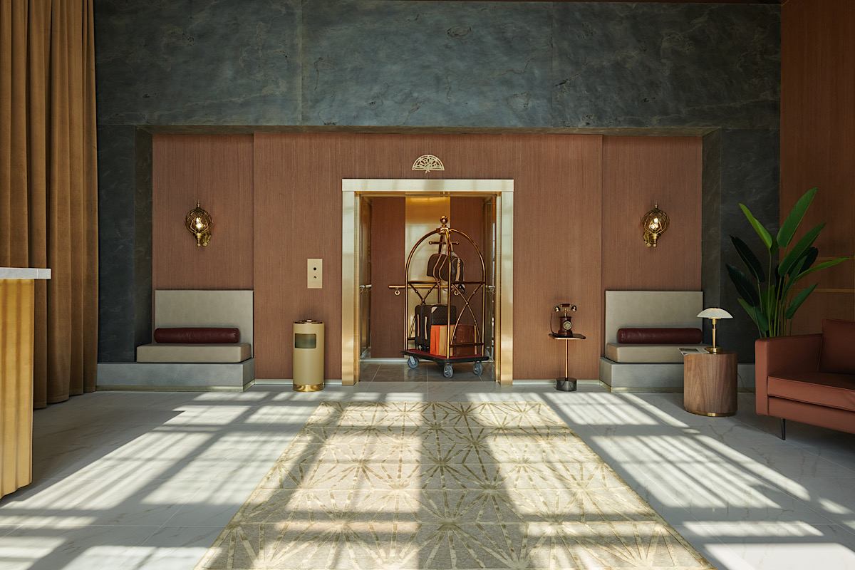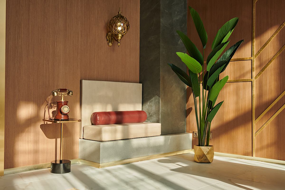 Зал выполнен в стилистике лобби отеля: лифт, бар, бизнес лаунж. Огромные окна на солнечной стороне.