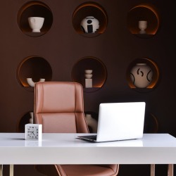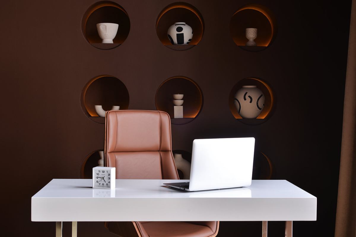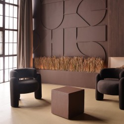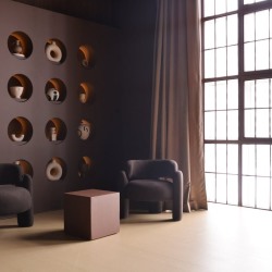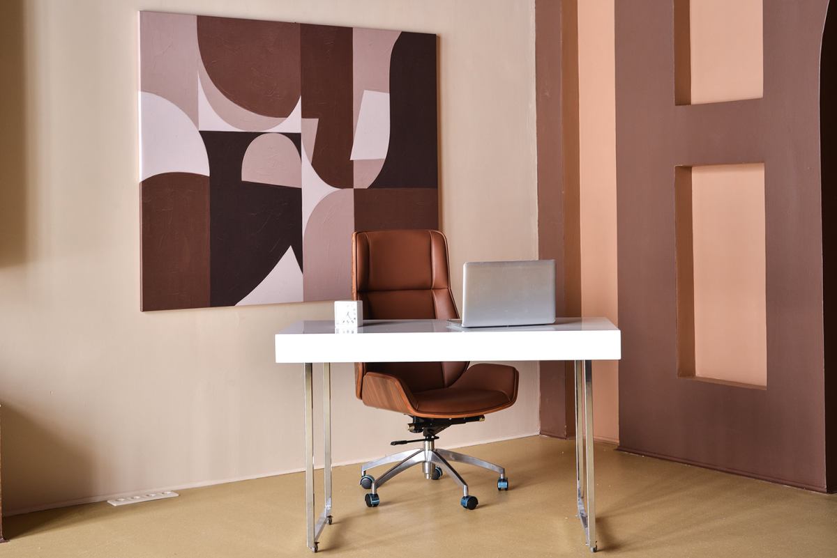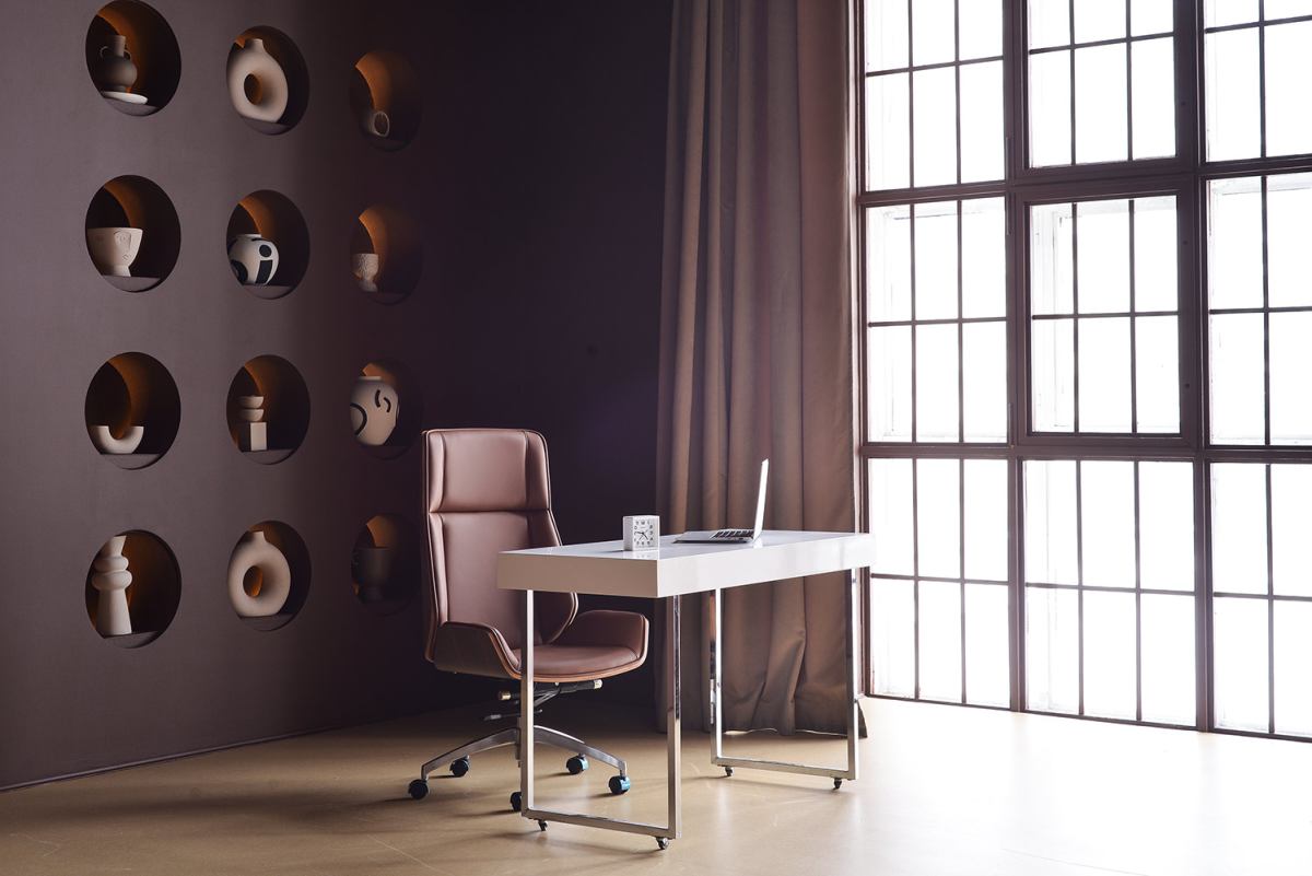 Бетон, металл и стильная минималистичная мебель. В студии теперь есть мобильная стена со встроенными светильниками.