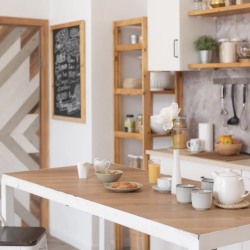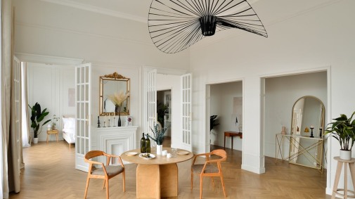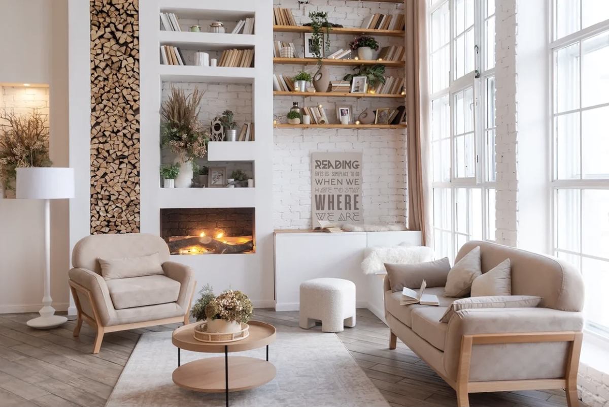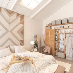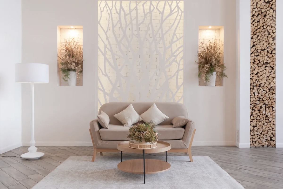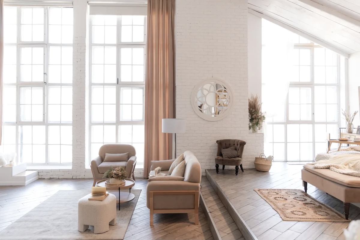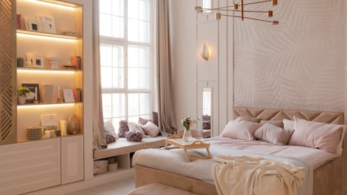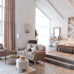 Легкий и светлый скандинавский интерьер с тремя огромными окнами. Уютная спальня, функциональная кухня и гостиная. В зоне спальни над потолком установлен источник постоянного света, позволяющий имитировать дневной свет и в темное время суток