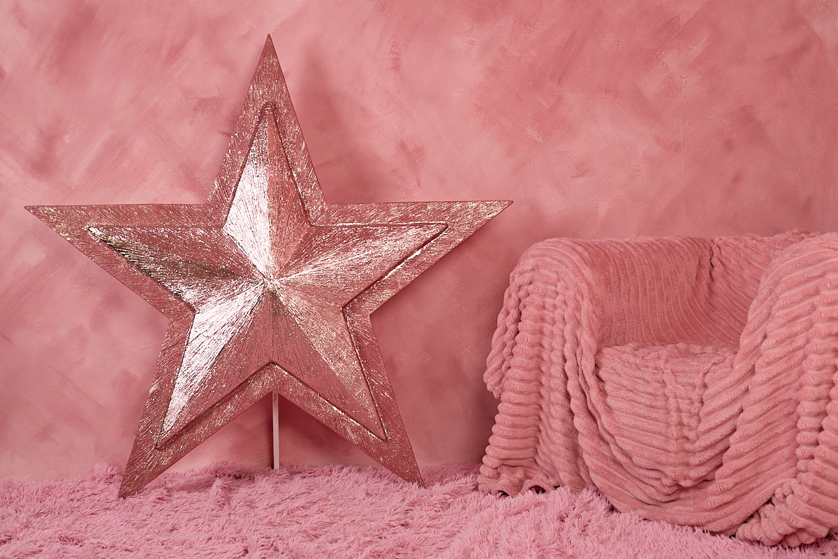 —зона в стиле «деревенская изба» с сушеными травами и венками из цветов; —зеркало с подсветкой; —новогодняя локация в золотых оттенках с камином; —цветочная стена из больших бутонов; —собственная отдельная гримерка и кабинка для переодевания; —большая белая звезда с подсветкой; — большая кровать в стиле Барокко; — панорамное окно; — огромный плюшевый медведь 2,4 м, множество маленьких игрушек;