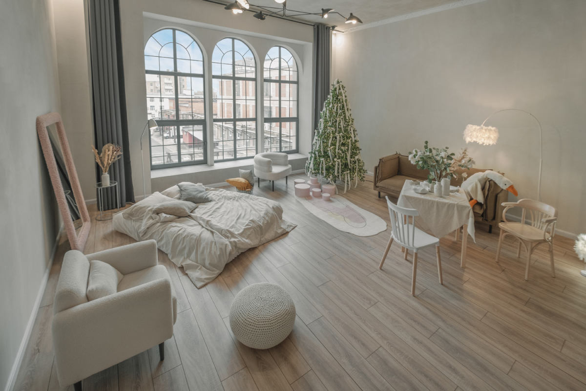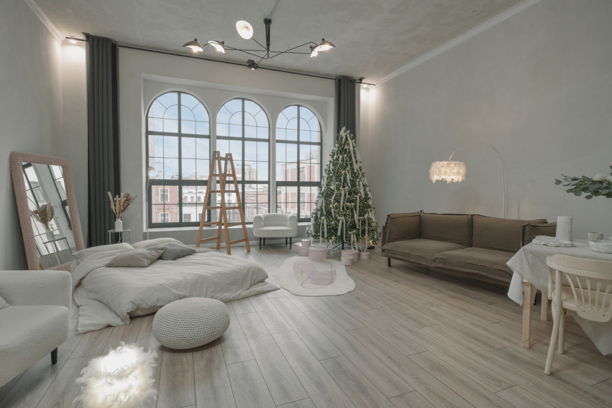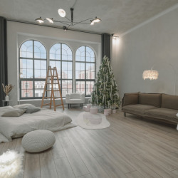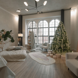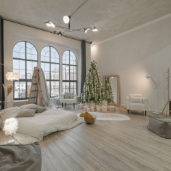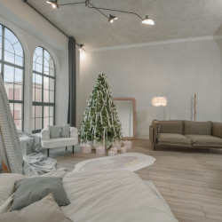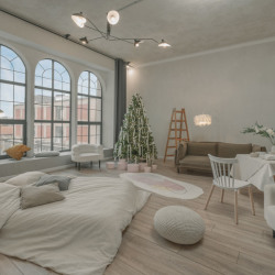 Зал украшен к новому году, декорации простоят до середины января. При необходимости убрать их можно под залог.Зал в самом актуальном стиле Bauhaus, с зоной гостиной и спальной, очень много культовых моделей мебели mid-century и даже пианино, огромное...