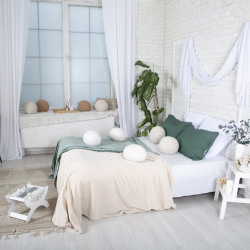 Представляем Вам обновленный зал Home. Кухня, большое окно, солнечная сторона, кровать, диван с креслом и тканевые фотофоны. Пастельные цвета стен и мебели в соответствии с трендом этого года....