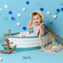 Эксклюзивный авторский реквизит - ванночки для купания, воздушный шар, автомобили, самолёты, тележка, лодка и другие.