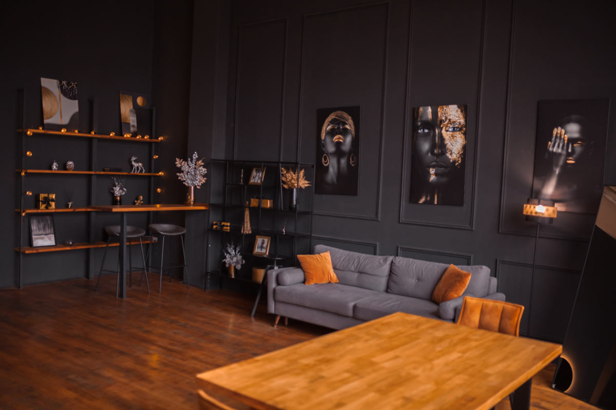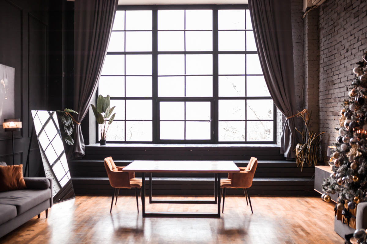 Стильный и лаконичный зал Брэдли смонтирован в разных стилях, хорошо гармонирующих между собой: неоклассика, облегченный лофт и минимализм.