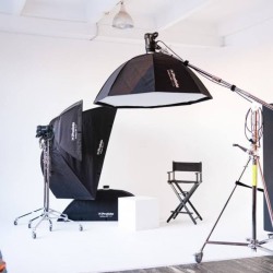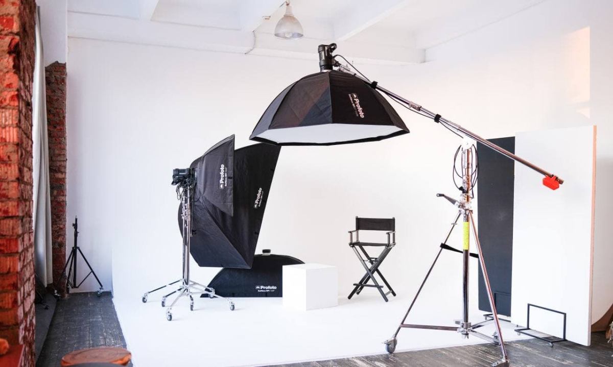 В зале белая угловая циклорама 5*5. Оборудование Profoto D2. Три источника включены в аренду, 4−й можно взять за доп.оплату. Два синхронизатора. Различные модификаторы света, флаги, отражатели, маски ГОБО, зеркальный пластик, кондиционер, стулья, бумажные фоны