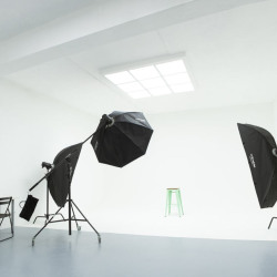 Очень светлый зал с большой циклорамой 6x3,5 метра.