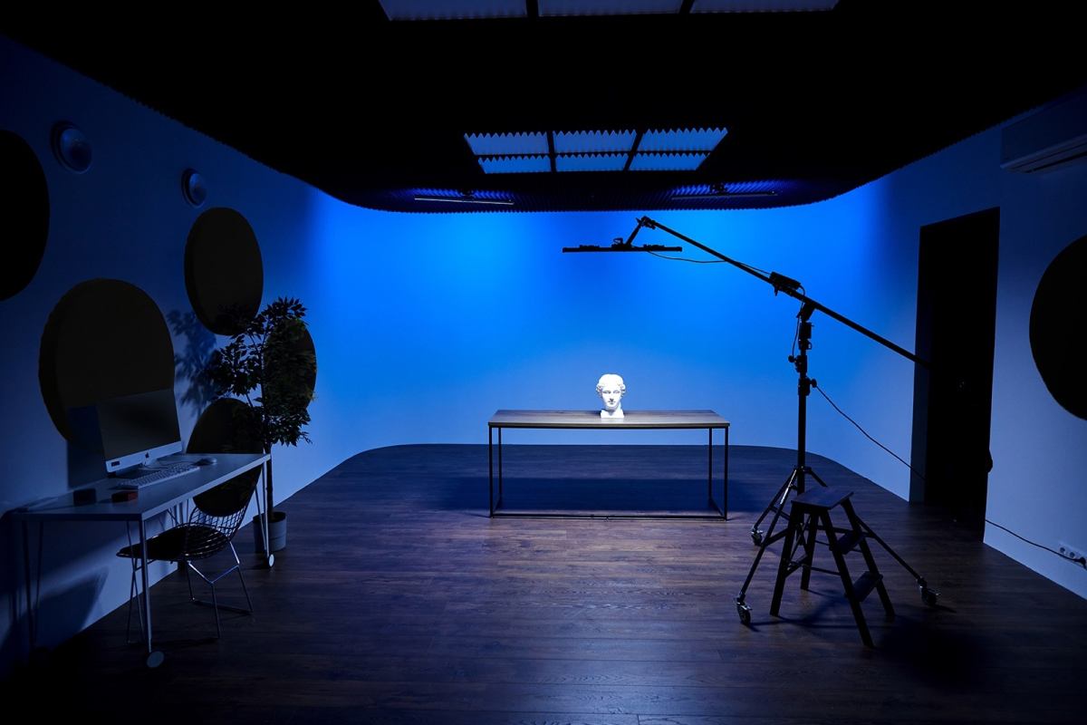 Новый зал с хромакейной стеной синего цвета и большой белой стеной без углов начинает работу в тестовом режиме. В нём уже можно работать, но в ближайшее время он будет дополнен звукопоглощающими панелями и некоторым реквизитом