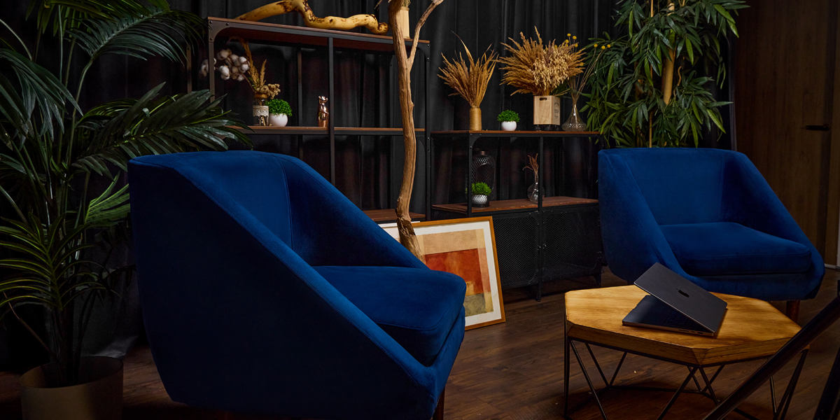 В зале доступна синяя хромакейная стена.