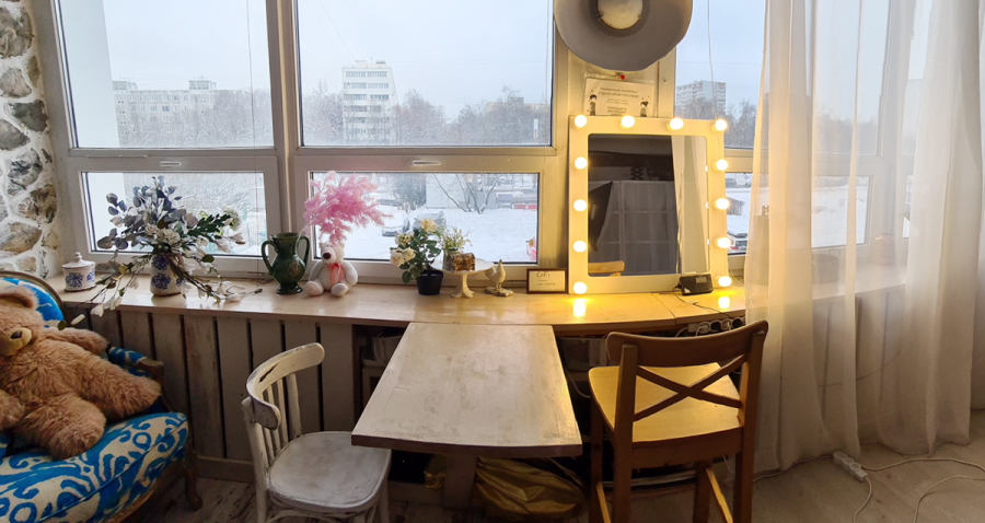 Это уютная и светлая, интерьерная студия с большими окнами и потолками высотой 4,5 метра и залом 60 кв метров. Основное направление студии, семейные и детские фотосессии. Студия оборудована всем необходимым для профессиональной фотосъемки любой сложности.